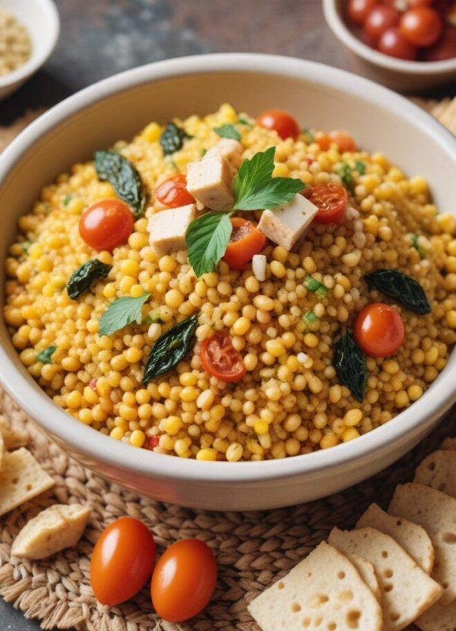 Ana Yemek: Sebzeli Kuskus Renkli biberler, kabak, patlıcan ve havuçla hazırlanan, kuskus taneleriyle harmanlanmış doyurucu ve lezzetli bir yemek. Akdeniz baharatlarıyla tatlandırılmış bu yemek, hem gözlere hem de damaklara hitap eder.
